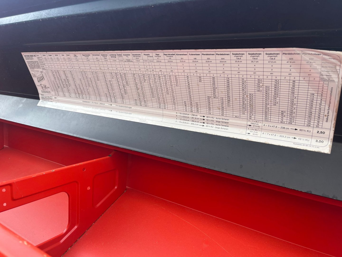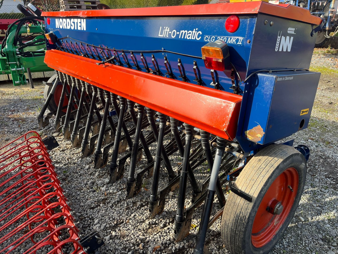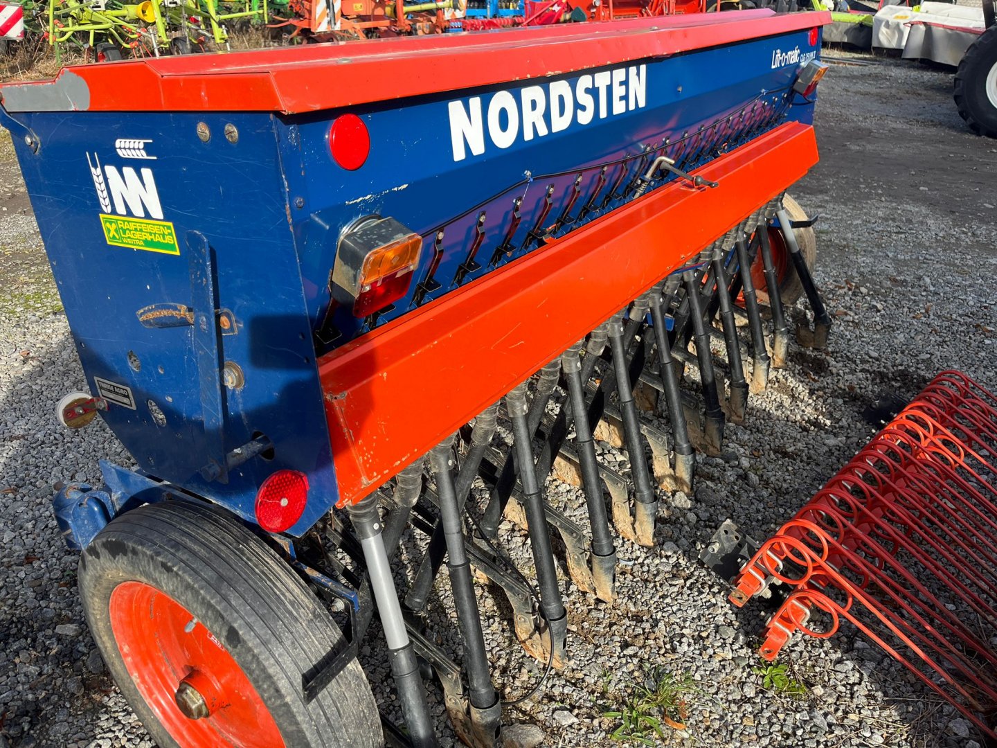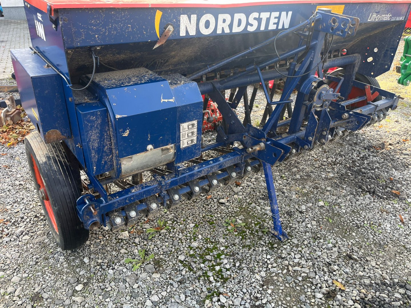 SECÍ MAŠINA, STROJ NORDSTEN LIFT-O-MATIC 2,5m zavlačování, výsevní tabulky a manuál, OSVĚTLENÍ